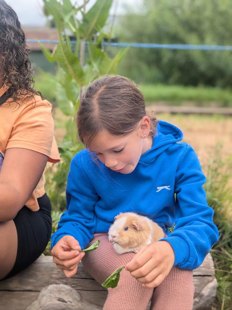 Children learned about the chicks, fed the goats, collected eggs and held the guinea pigs.