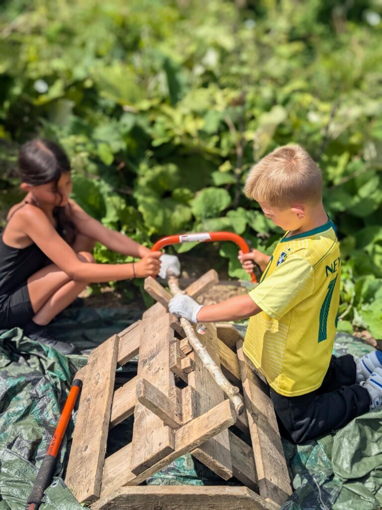 The groups have chopped wood, created nature clay sculptures, watered the plants, weaved with wool, discovered trails, cooked popcorn on the fire and much more.