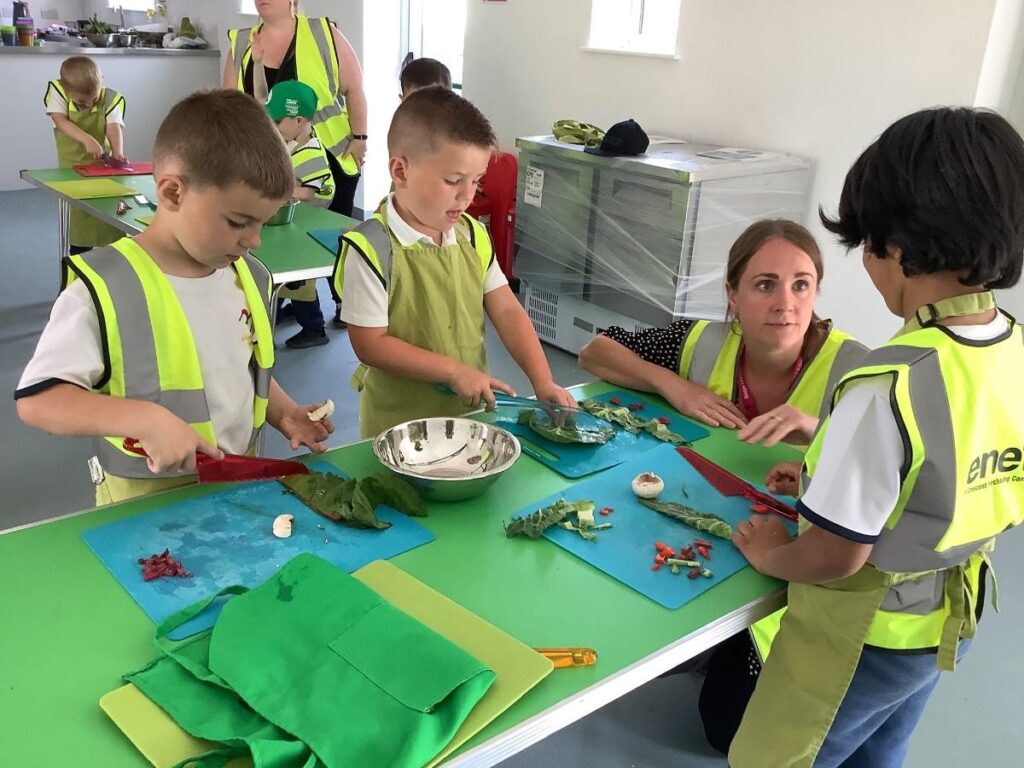 Reception and year 1 from the local primary school have been pond dipping, picking vegetables, cooking and feeding the animals.